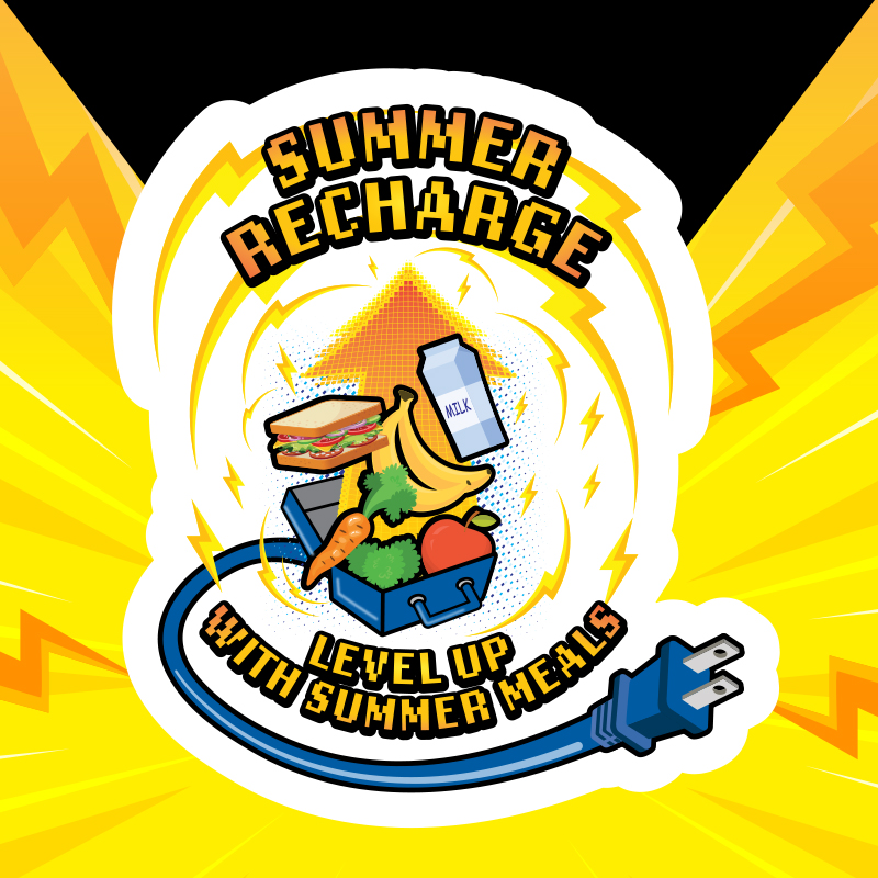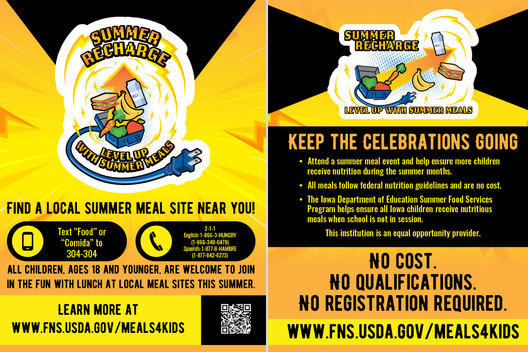 Flyer from the Media Tool Kit for the Iowa Department of Education Summer Food Progam, showcasing a custom hero illustration.