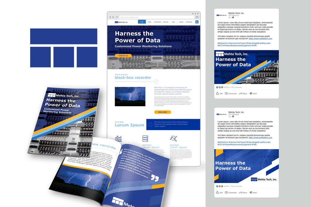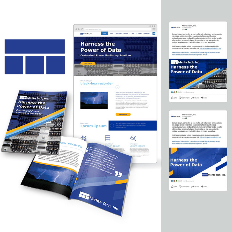 Created concept materials for branding and key messaging for a new direction of the company, Mehta Tech, Inc. across multiple platforms.