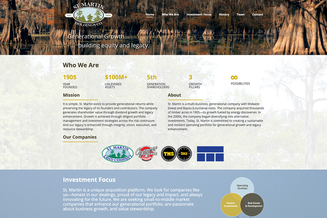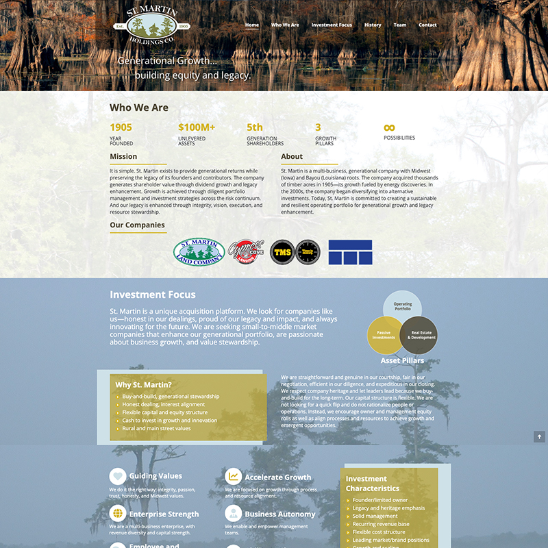 A single scroll website built in Wordpress for client St. Martin Holding.