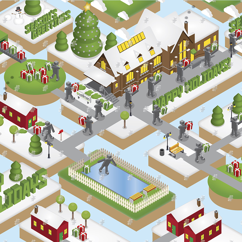 Every Christmas, Hellman would craft distinctive wrapping paper to distribute as a promotional gift to clients.